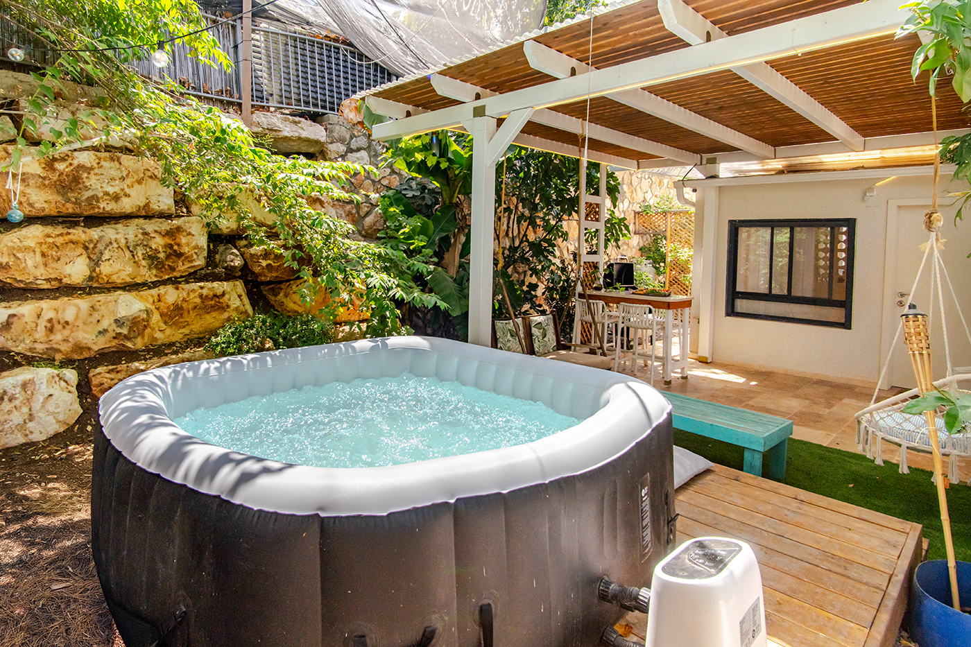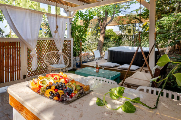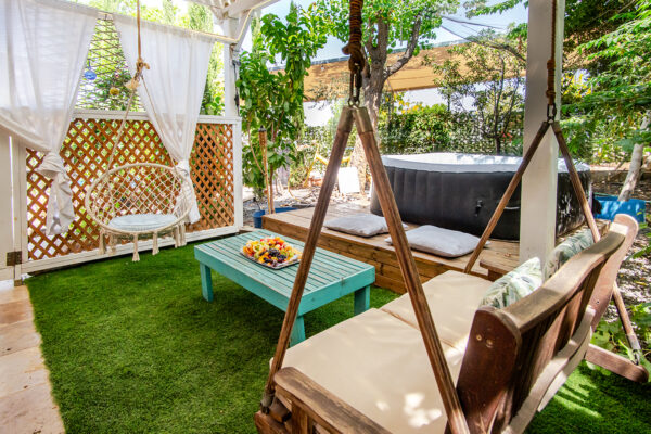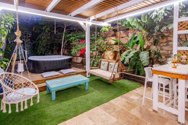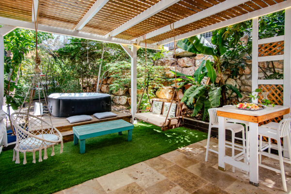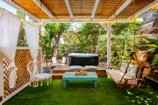 בגינת תהנו מערסלים תלויים ומפינת ישיבה מעץ תחת צל העצים ובו בעת תיהנו מבריזה משגעת גם בימי הקיץ החמים.