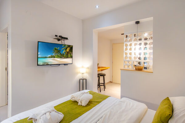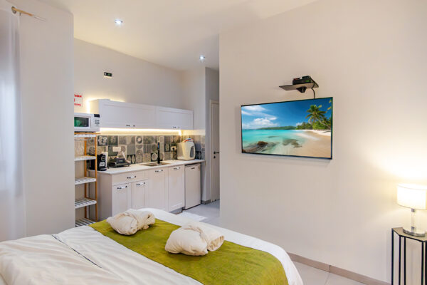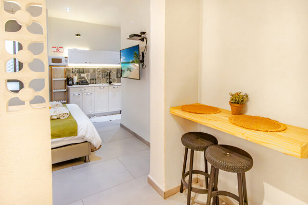 היחידה מעוצבת בסגנון רטרו בצבעים רכים ומזמינים שמשרים רוגע ונועם.