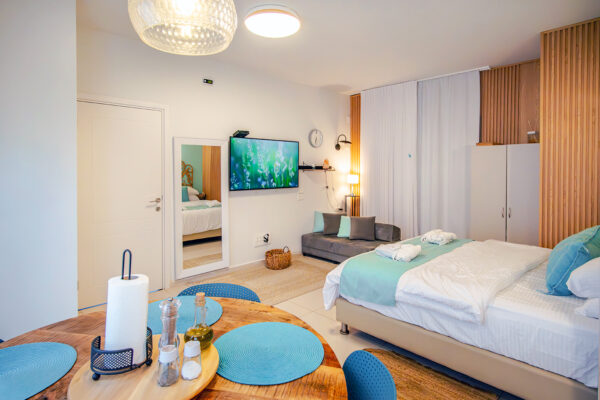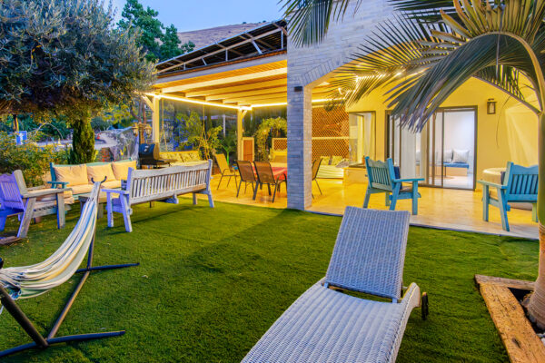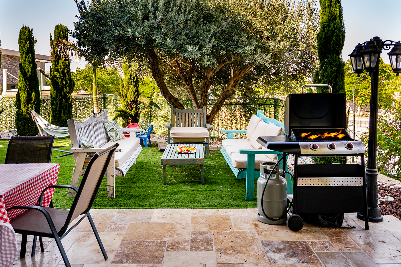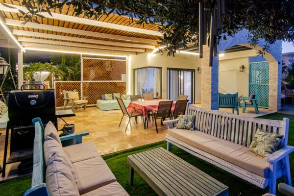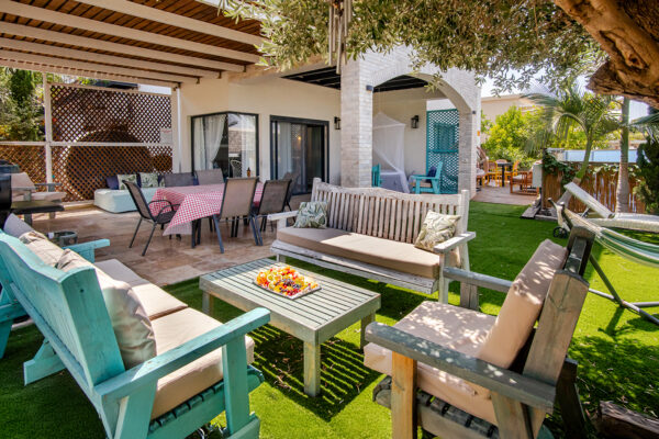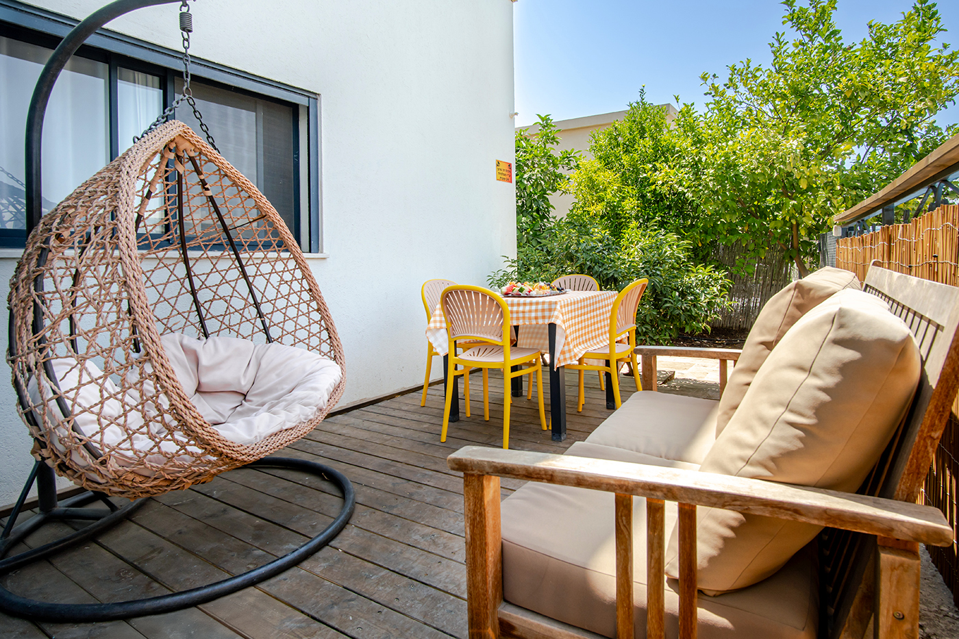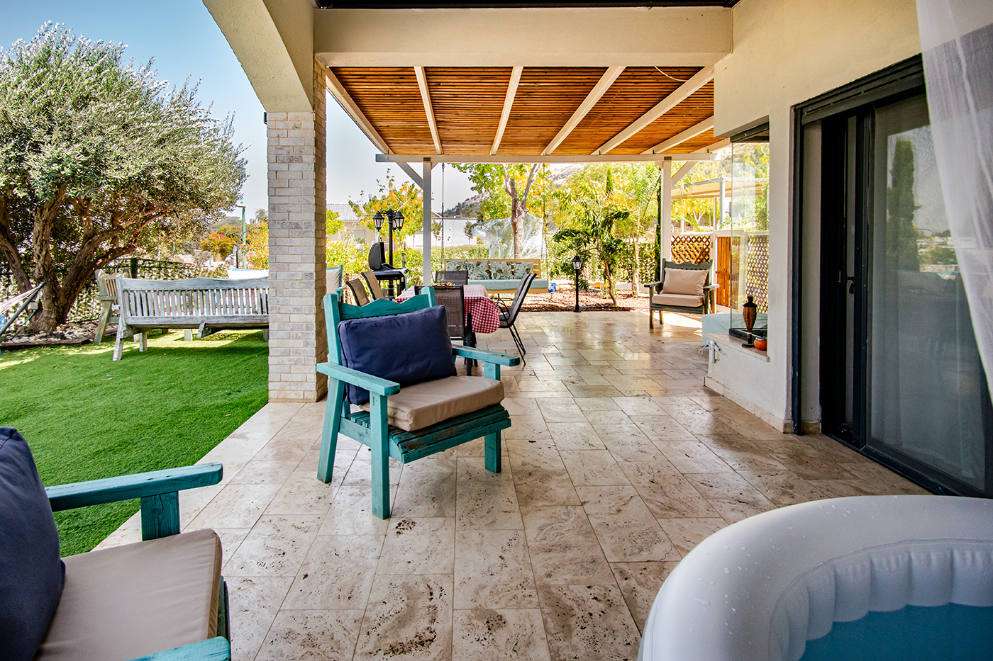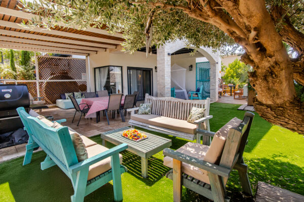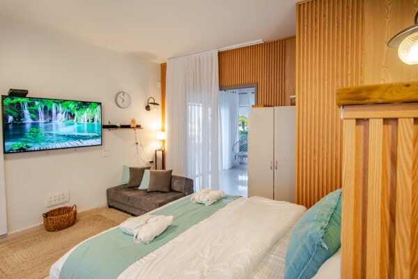 מתחם השינה כולל מיטה זוגית 160/200 , המזרן ברכות ניטראלית.ספה נפתחת 130/190 ס"מ, מטבחון וחדר רחצה מרווח ומפנק הכולל אמבטיה,היחידה מתאימה ל 4 אנשים. ליחידה מתחם ישיבה בחוץ הכולל, מנגל גז,ערסל,שולחן אוכל וגינה גדולה סמוכה העומדת לרשות האורחים.
